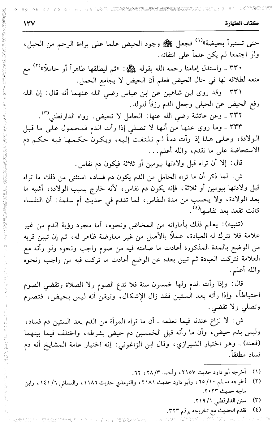 332 وعن عائشة رضي الله عنها : الحامل لا تحيض . رواه الدارقطني .