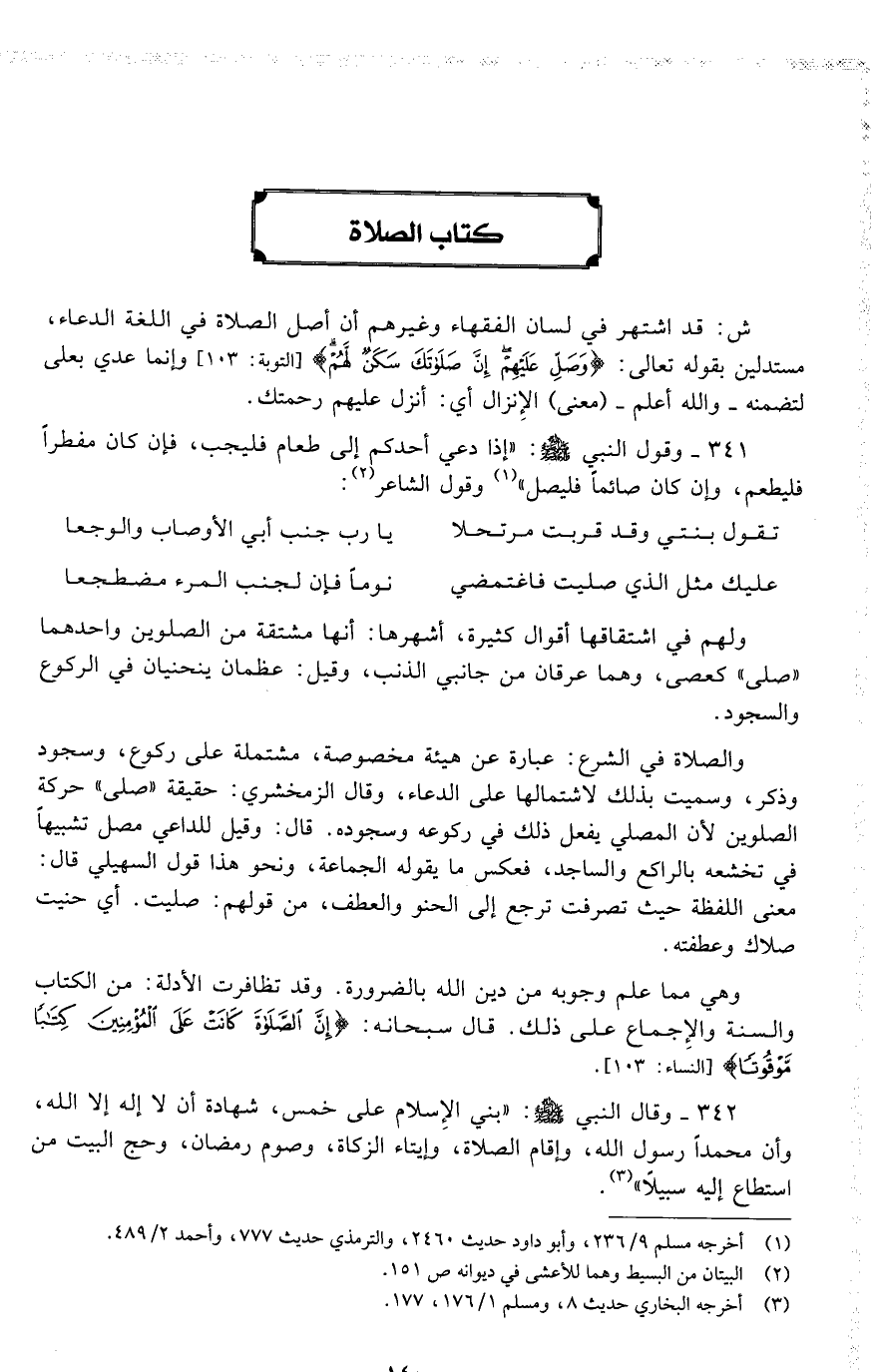 341 وقول النبي : ( إذا دعي أحدكم إلى طعام فليجب ، فإن كان مفطراً فليطعم ، وإن كان صائماً فليصل ) وقول الشاعر :