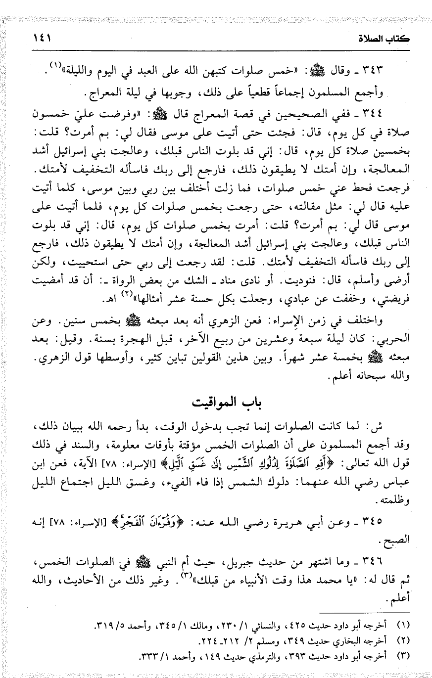 343 وقال (): (خمس صلوات كتبهن الله على العبد في اليوم والليلة).