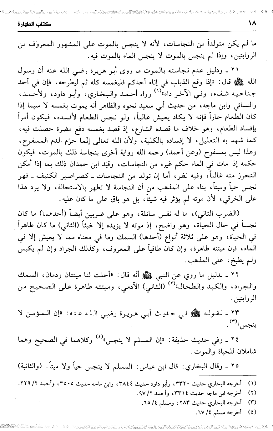 24 وفي حديث حذيفة : ( إن المسلم لا ينجس ) وكلاهما في الصحيح وهما شاملان للحياة والموت .