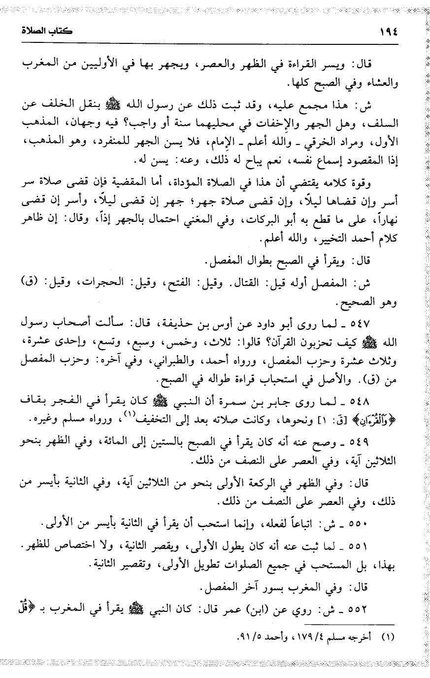 552 ش : روي عن ( ابن ) عمر قال : كان النبي [ ] يقرأ في المغرب ب 19 ( { قل ي