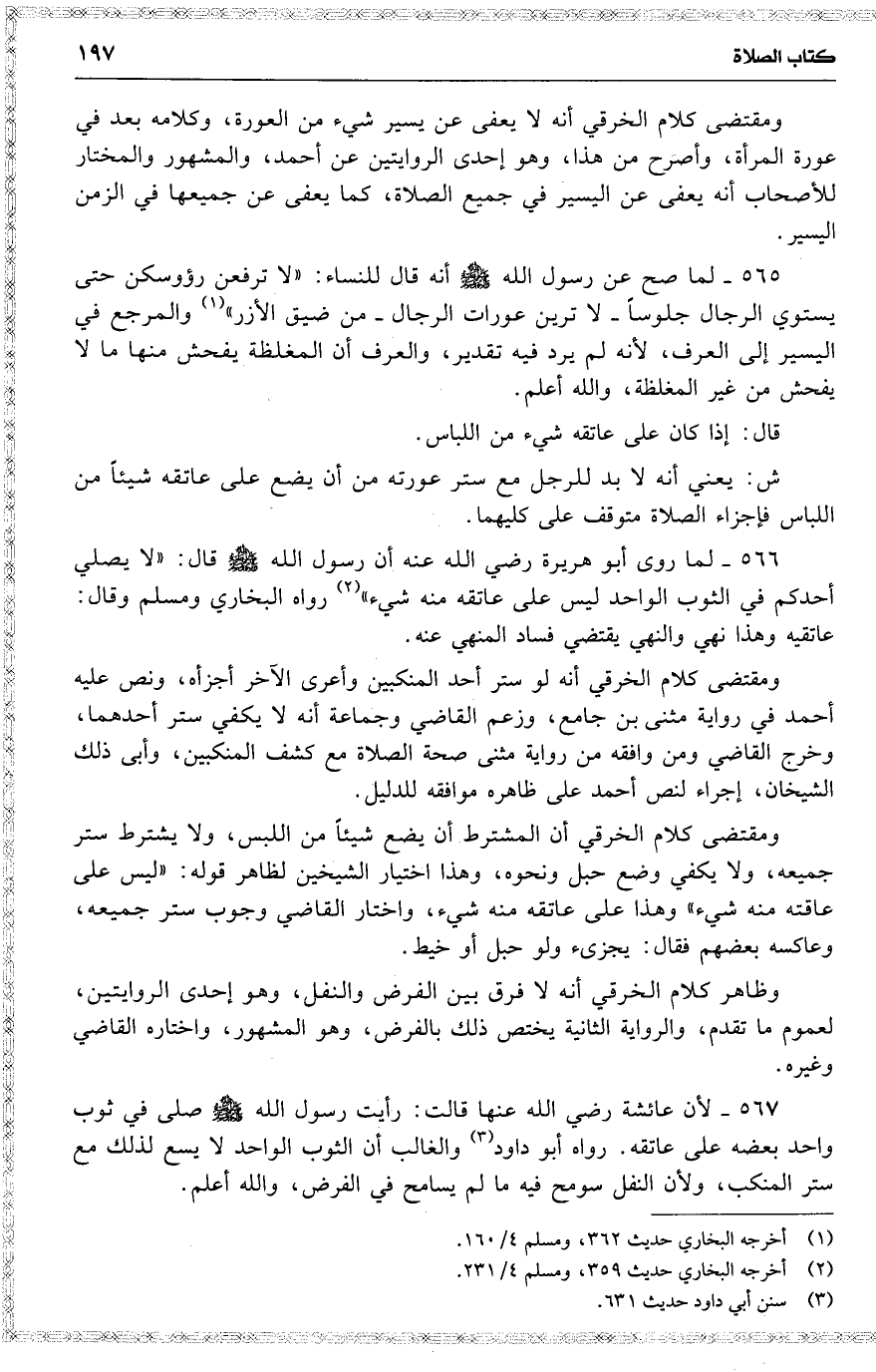 566 لما روى أبو هريرة [ رضي الله عنه ] أن رسول الله [ ] قال : ( لا يصلي أحدكم في الثوب الواحد ليس على عاتقه منه شيء ) رواه البخاري ومسلم [ وقال : عاتقيه ] وهذا نهي والنهي يقتضي فساد المنهي عنه .
