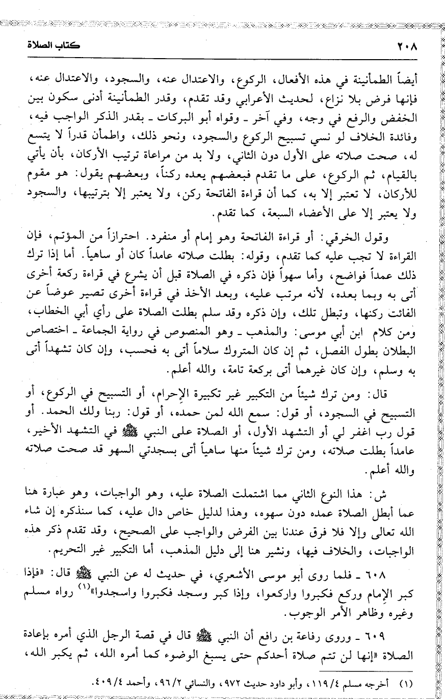 608 فلما روى أبو موسى الأشعري ، في حديث له عن النبي [ ] قال : ( فإذا كبر الإِمام وركع فكبروا واركعوا ، وإذا كبر وسجد فكبروا واسجدوا ) رواه مسلم وغيره وظاهر الأمر الوجوب .