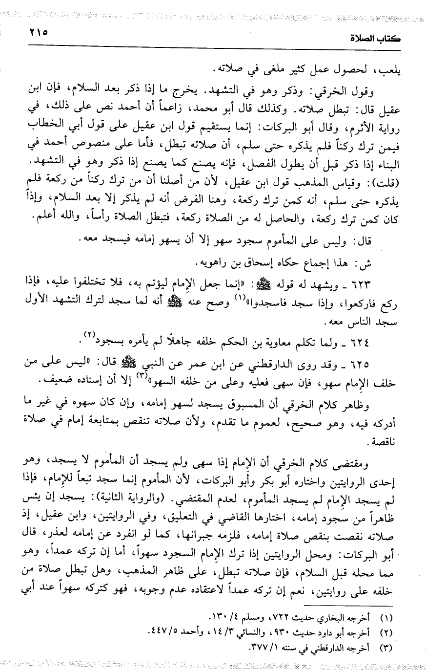 625 وقد روى الدارقطني عن ابن عمر عن النبي قال: (ليس على من خلف الإِمام سهو، فإن سهى فعليه وعلى من خلفه السهو) إلا أن إسناده ضعيف.