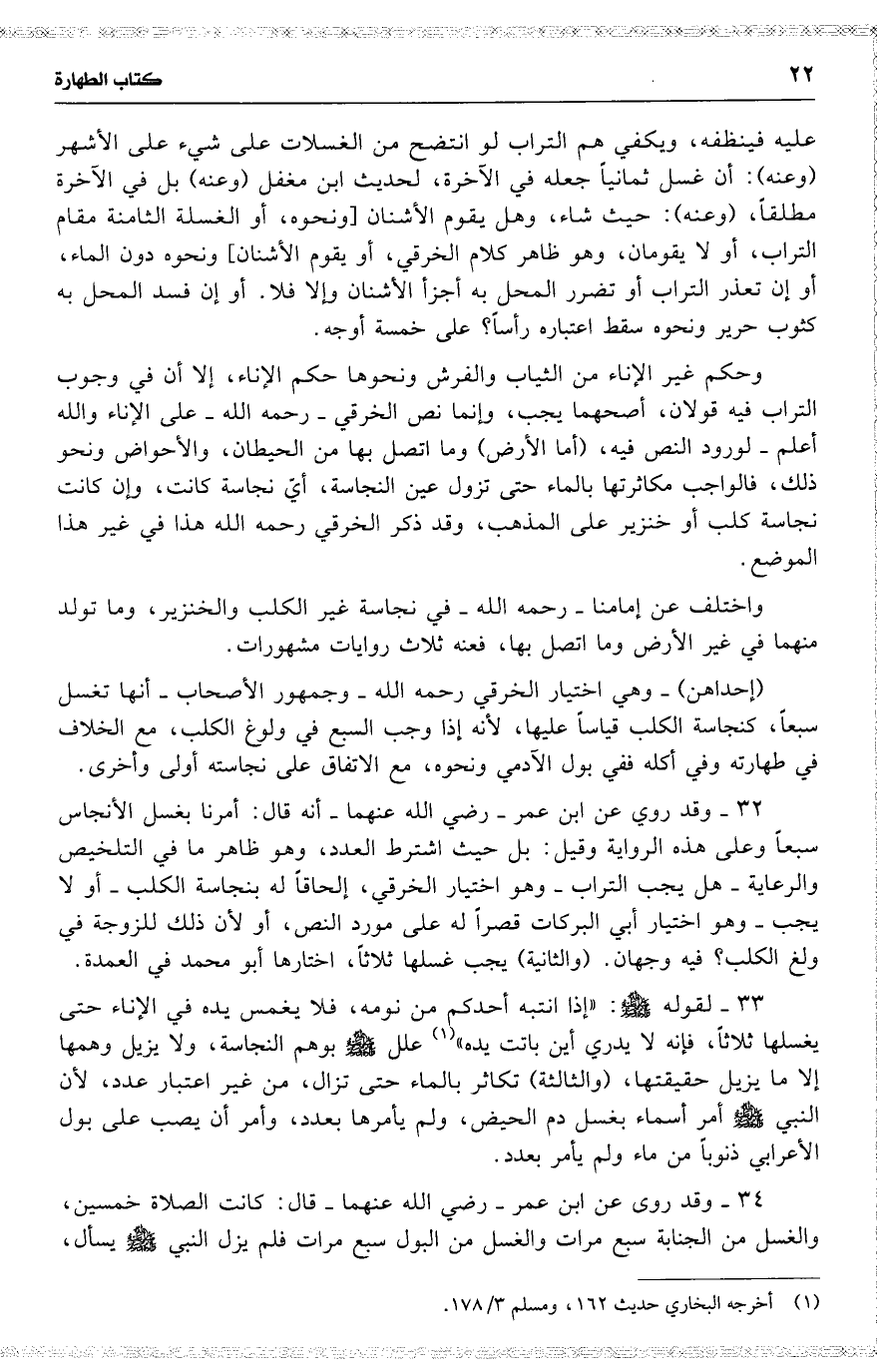 33 لقوله : ( إذا انتبه أحدكم من نومه ، فلا يغمس يده في الإناء حتى يغسلها ثلاثاً ، فإنه لا يدري أين باتت يده ) علل بوهم النجاسة ، ولا يزيل وهمها [ إلا ما يزيل ] حقيقتها ، ( والثالثة ) تكاثر بالماء حتى تزال ، من غير اعتبار عدد ، لأن النبي أمر أسماء بغسل دم الحيض ، ولم يأمرها بعدد ، وأمر أن يصب على بول الأعرابي ذنوباً من ماء ولم يأمر بعدد .