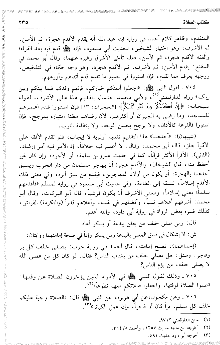 705 وذلك لقول النبي في الأمراء الذين يؤخرون الصلاة عن وقتها ( صلوا الصلاة لوقتها ، واجعلوا صلاتكم معهم تطوعاً ) .