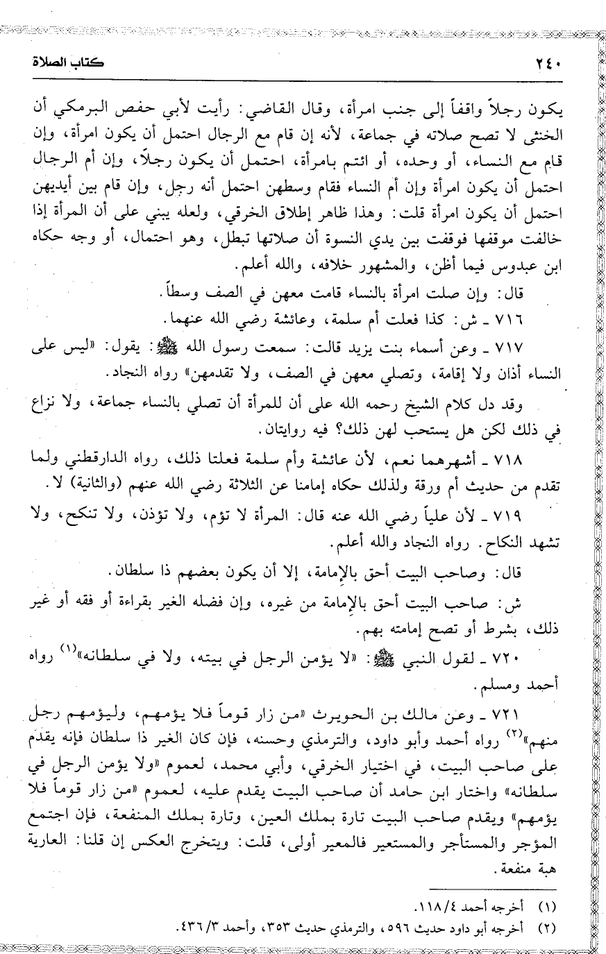 720 لقول النبي : ( لا يؤمن الرجل في بيته ، ولا [ في ] سلطانه ] رواه أحمد ومسلم .