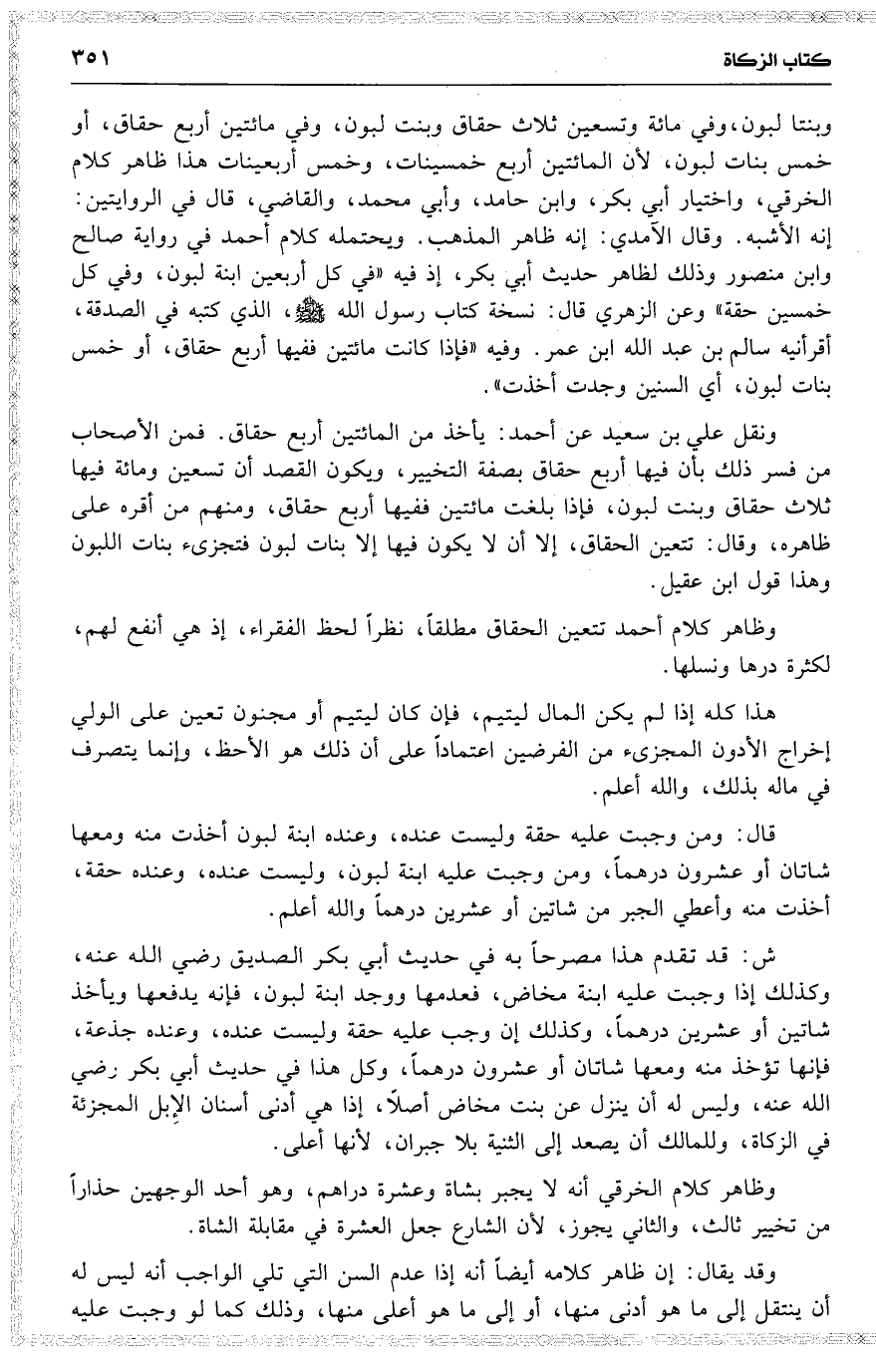 ونقل علي بن سعيد عن أحمد : يأخذ من المائتين أربع حقاق . فمن الأصحاب من فسر ذلك بأن فيها أربع حقاق بصفة التخيير ، ويكون القصد أن تسعين ومائة [ فيها ] ثلاث حقاق وبنت لبون ، فإذا بلغت مائتين ففيها أربع حقاق ، ومنهم من أقره على ظاهره ، وقال : تتعين الحقاق ، إلا أن لا يكون فيها إلا بنات لبون فتجزيء بنات اللبون وهذا قول ابن عقيل .