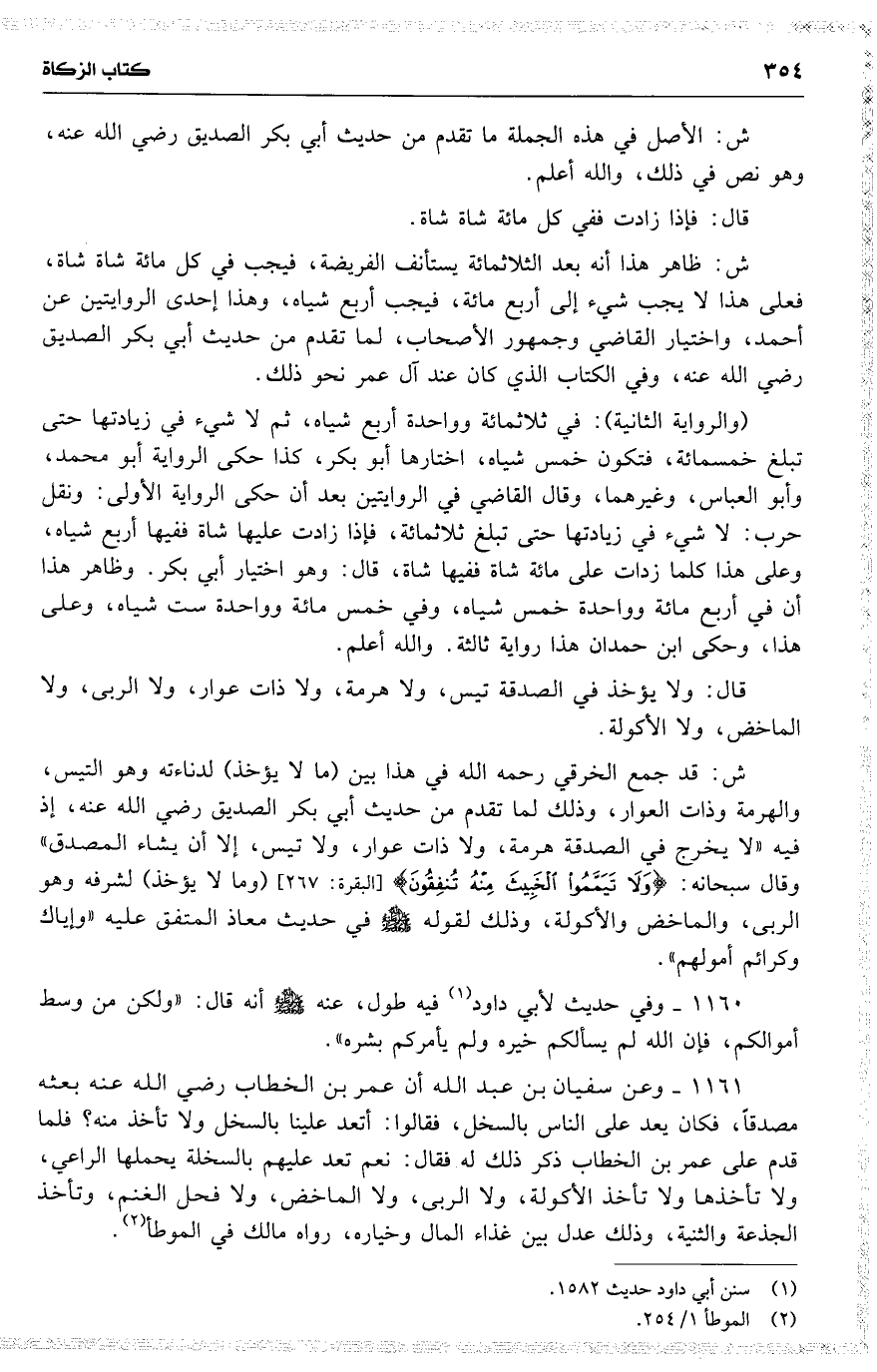 ش : قد جمع الخرقي رحمه الله في هذا بين ( ما لا يؤخذ ) لدناءته وهو التبس ، والهرمة وذات العوار ، وذلك لما تقدم من حديث أبي بكر الصديق رضي الله عنه ، إذ فيه ( لا يخرج في الصدقة هرمة ، ولا ذات عوار ، ولا تيس ، إلا أن يشاء المصدق ) وقال سبحانه : 19 ( { ولا تيمموا الخبيث منه تنفقون } ) ( ومل لا يؤخذ ) لشرفه وهو الربى ، والماخض والأكولة ، وذلك لقوله في حديث معاذ المتفق عليه ( وإياك وكرائم أمولهم ) .