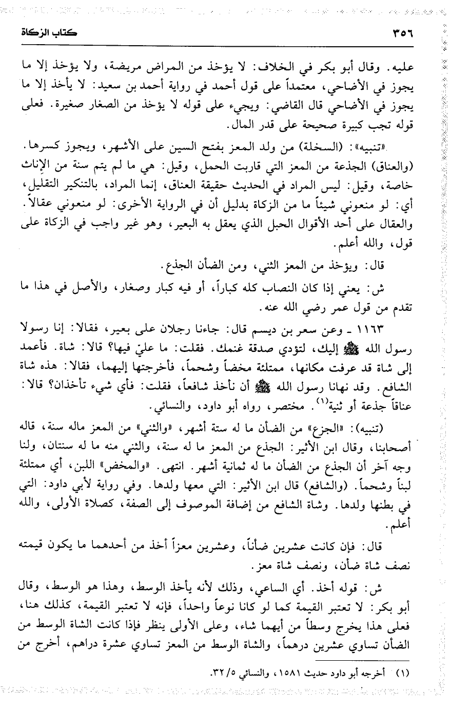 1163 وعن سعر بن ديسم قال : 16 ( جاءنا رجلان على بعير ، فقالا : إنا رسولًا رسول الله إليك ، لتؤدي صدقة غنمك . فقلت : ما عليّ فيها ؟ قالا : شاة . فأعمد إلى شاة قد عرفت مكانها ، ممتلئة مخضاً وشحماً ، فأخرجتها إليهما ، فقالا : هذه شاة الشافع . وقد نهانا رسول الله أن نأخذ شافعاً ، فقلت : فأي شيء تأخذان ؟ قالا : عناقاً جذعة أو ثنية ) . مختصر ، رواه أبو داود ، والنسائي .