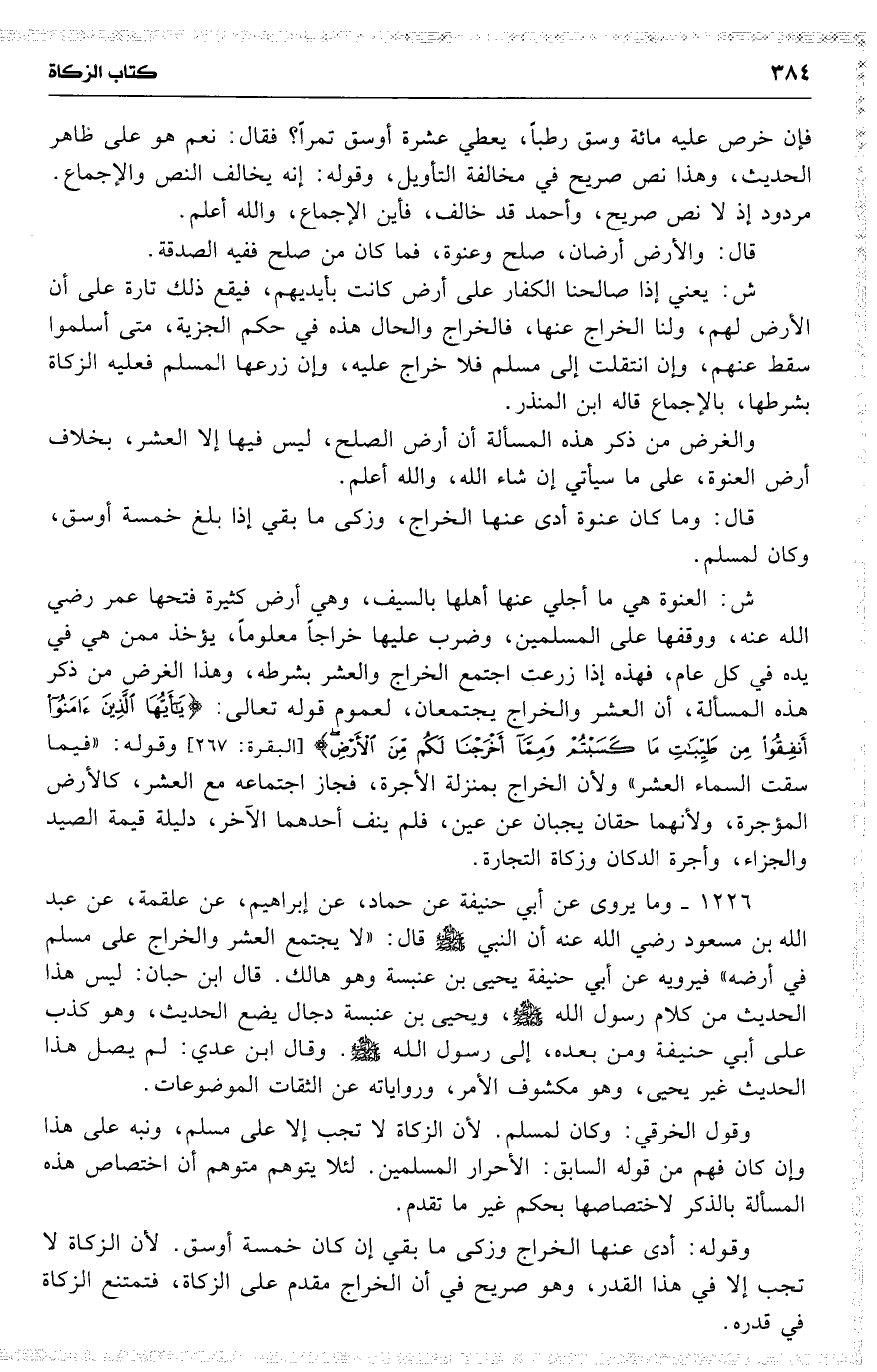 ش : يعني إذا صالحنا الكفار على أرض كانت بأيديهم ، فيقع ذلك تارة على أن الأرض لهم ، ولنا الخراج عنها ، فالخراج والحال هذه في حكم الجزية ، متى أسلموا سقط عنهم ، وإن انتقلت إلى مسلم فلا خراج عليه ، وإن زرعها المسلم فعليه الزكاة بشرطها ، بالإجماع قاله ابن المنذر .
