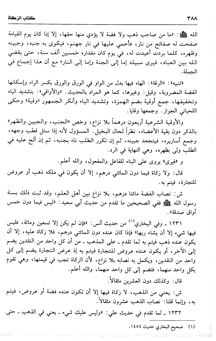 1232 لما تقدم في حديث علي : ( وليس عليك شيء [ يعني ] في الذهب حتى
