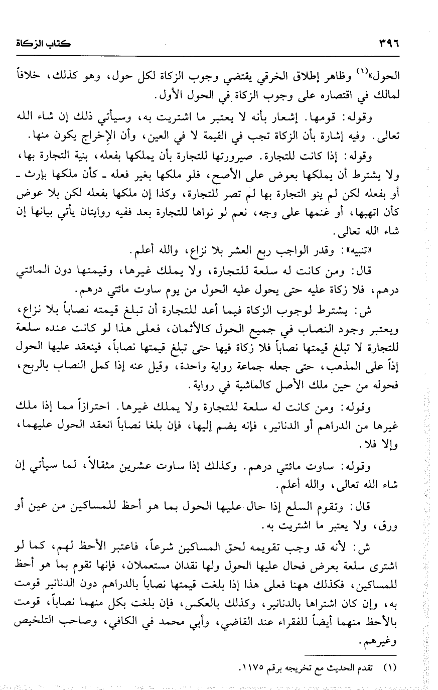 الحول ) [ وظاهر ] إطلاق الخرقي يقتضي [ وجوب ] الزكاة لكل حول ، وهو كذلك ، خلافاً لمالك في اقتصاره على وجوب الزكاة في الحول الأول .