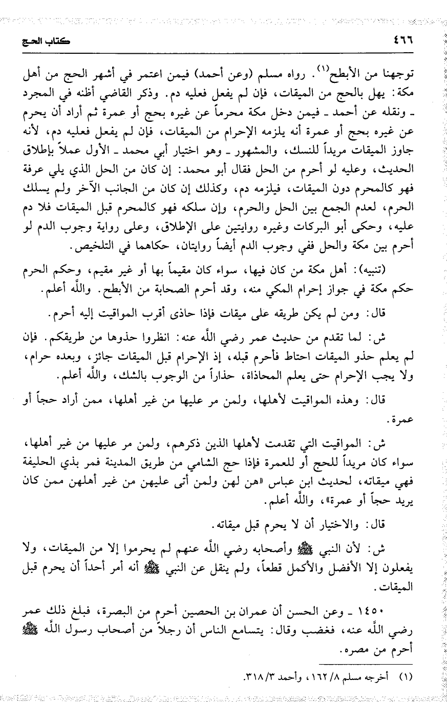 1450 وعن الحسن 16 ( أن عمران بن الحصين أحرم من البصرة ، )6 ( فبلغ ذلك عمر رضي اللَّه عنه ، فغضب وقال : يتسامع الناس أن رجلاً من أصحاب رسول اللَّه أحرم من مصره . )