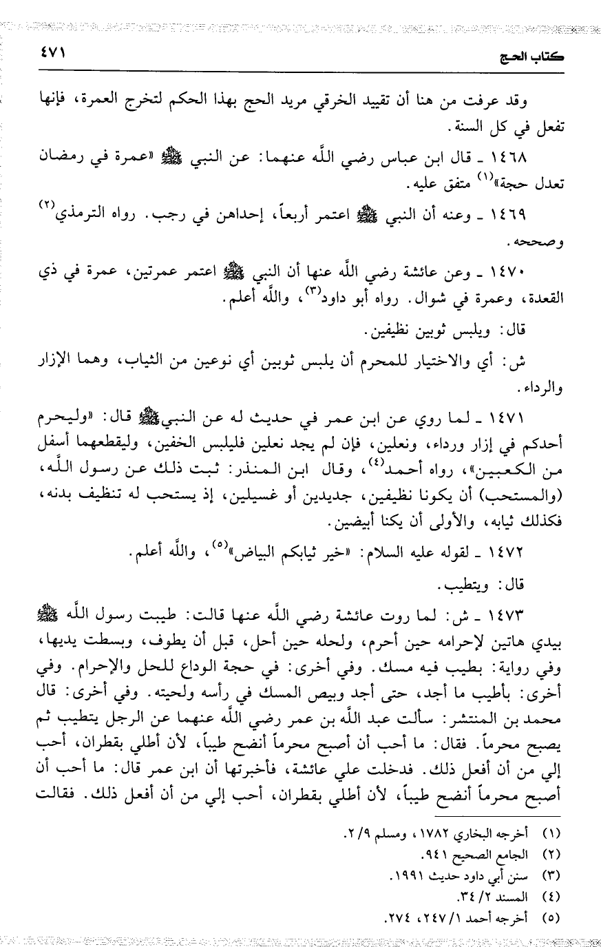 1468 قال ابن عباس رضي اللَّه عنهما : عن النبي ( عمرة في رمضان تعدل حجة ) متفق عليه .