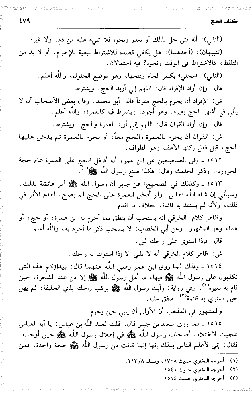 1512 وفي الصحيحين عن ابن عمر ، 16 ( أنه أدخل الحج على العمرة عام حجة الحرورية . وذكر الحديث وقال : هكذا صنع رسول اللَّه . )
