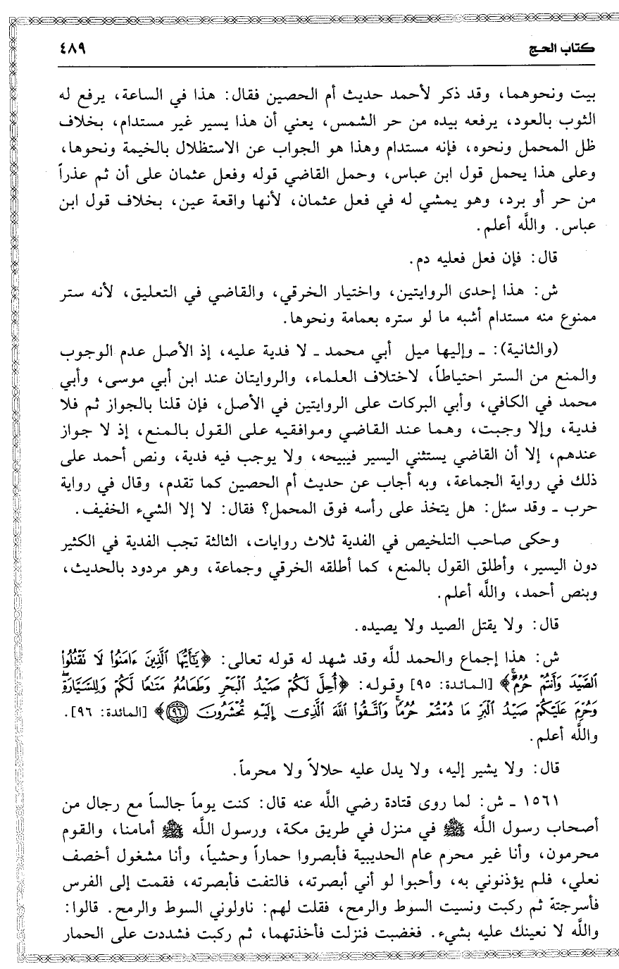 ش : هذا إجماع والحمد للَّه [ وقد شهد له ] قوله تعالى : 19 ( { يا أيها الذين آمنوا لا تقتلوا الصيد وأنتم حرم } ) وقوله : 19 ( { أحل لكم صيد البحر وطعامه ، متاعاً لكم وللسيارة ، وحرم عليكم صيد البر ما دمتم حرماً ، واتقوا اللَّه الذي إليه تحشرون } ) . واللَّه أعلم .