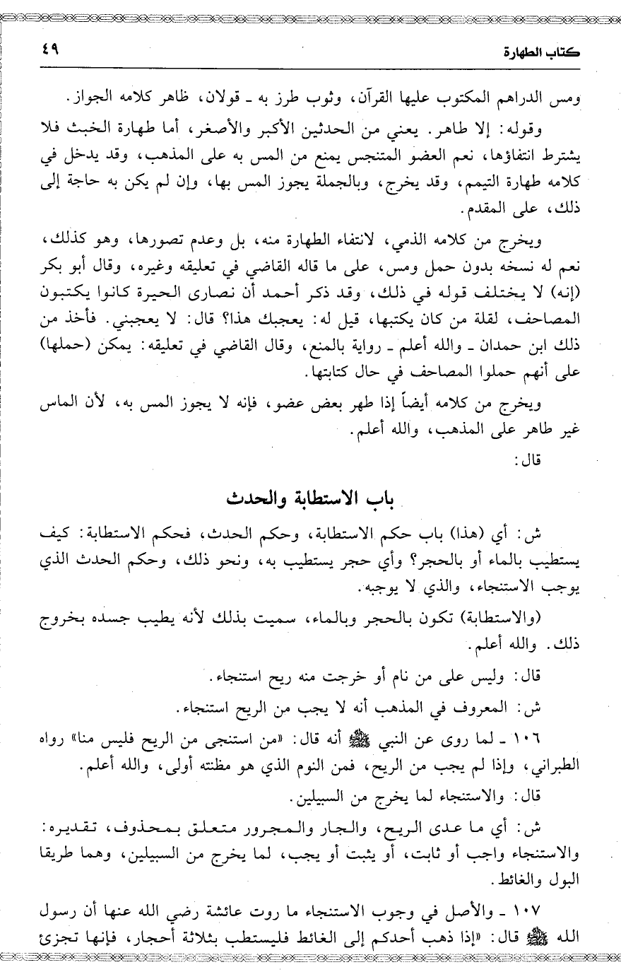 106 لما روى عن النبي أنه قال : ( من استنجى من الريح فليس منا ) رواه الطبراني ، وإذا لم يجب من الريح ، فمن النوم الذي هو مظنته أولى ، [ والله أعلم ] .
