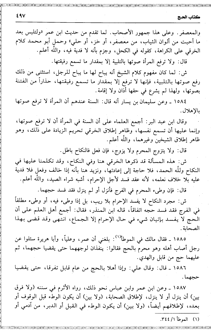 1584 وعن سليمان بن يسار أنه قال : 16 ( السنة عندهم أن المرأة لا ترفع صوتها بالإهلال ) .