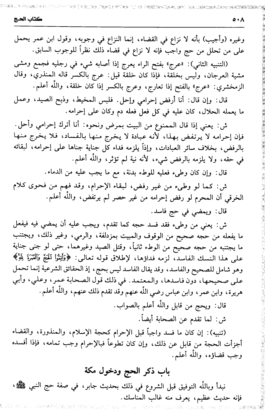 وغيره ( وأجيب ) بأنه لا نزاع في القضاء ، إنما النزاع في وجوبه ، وقول ابن عمر يحمل على من تحلل من حج واجب فإنه لا نزاع في قضاء ذلك نظراً للوجوب السابق .