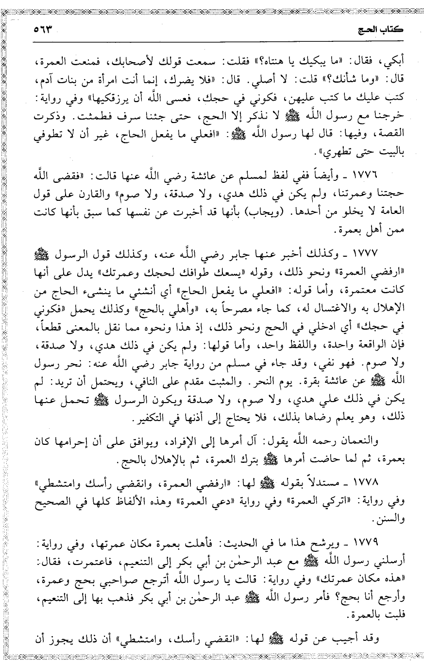 1778 مستدلاً بقوله لها : ( ارفضي العمرة ، وانقضي رأسك وامتشطي ) وفي رواية : ( اتركي العمرة ) وفي رواية ( دعي العمرة ) وهذه الألفاظ كلها في الصحيح والسنن .