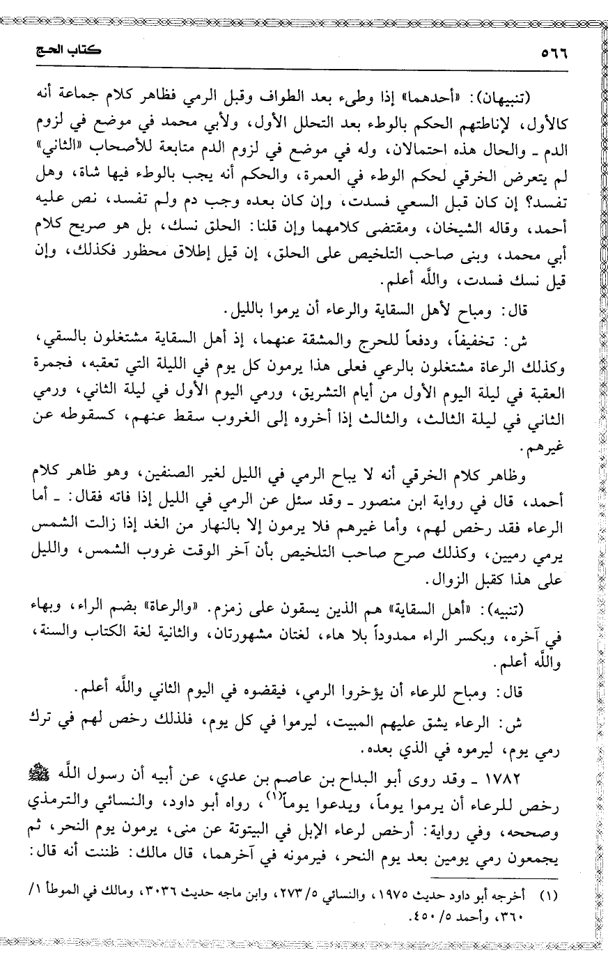 1782 وقد روى أبو البداح بن عاصم بن عدي ، عن أبيه أن رسول اللَّه رخص للرعاء أن يرموا يوماً ، ويدعوا يوماً ، رواه أبو داود ، والنسائي والترمذي وصححه ، وفي رواية : أرخص لرعاء الإبل في البيتوتة عن منى ، يرمون يوم النحر ، ثم يجمعون رمي يومين بعد يوم النحر ، فيرمونه في آخرهما ، قال مالك : ظننت أنه قال :