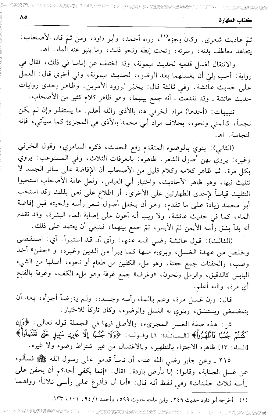 215 وعن جابر رضي الله عنه ، أن ناساً قدموا على رسول الله فسألوه عن غسل الجنابة ، وقالوا : إنا بأرض باردة . فقال : ( إنما يكفي أحدكم أن يحفن على رأسه ثلاث حفنات ) وفي لفظ أنه قال : ( أما أنا فأفرغ على رأسي ثلاثاً ) رواهما