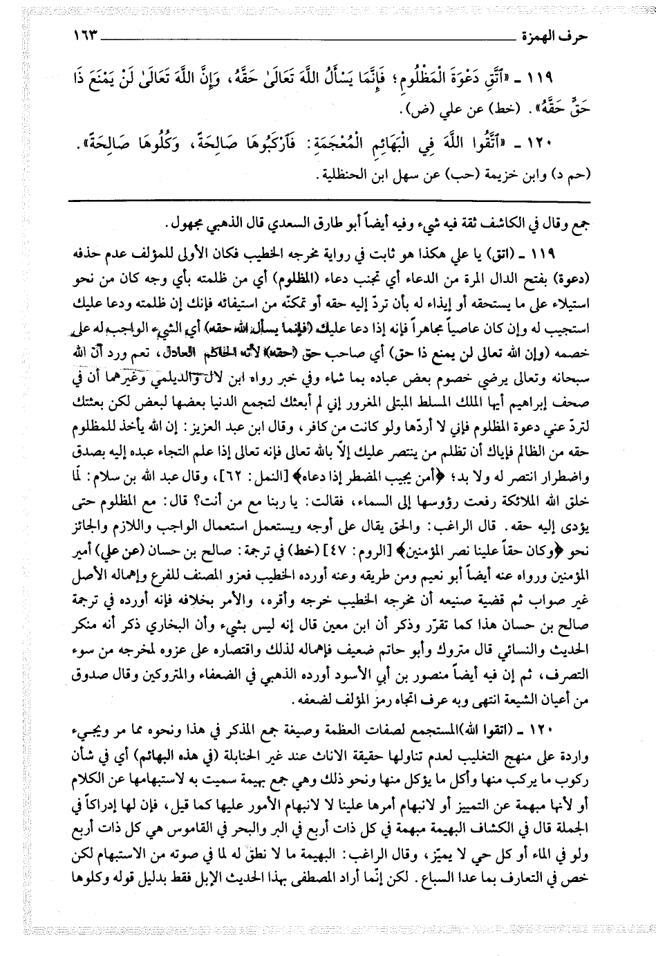 120 - (اتقوا الله) المستجمع لصفات العظمة وصيغة جمع المذكر في هذا ونحوه مما مر ويجئ واردة على منهج التغليب لعدم تناولها حقيقة الإناث عند غير الحنابلة (في هذه البهائم) أي في شأن