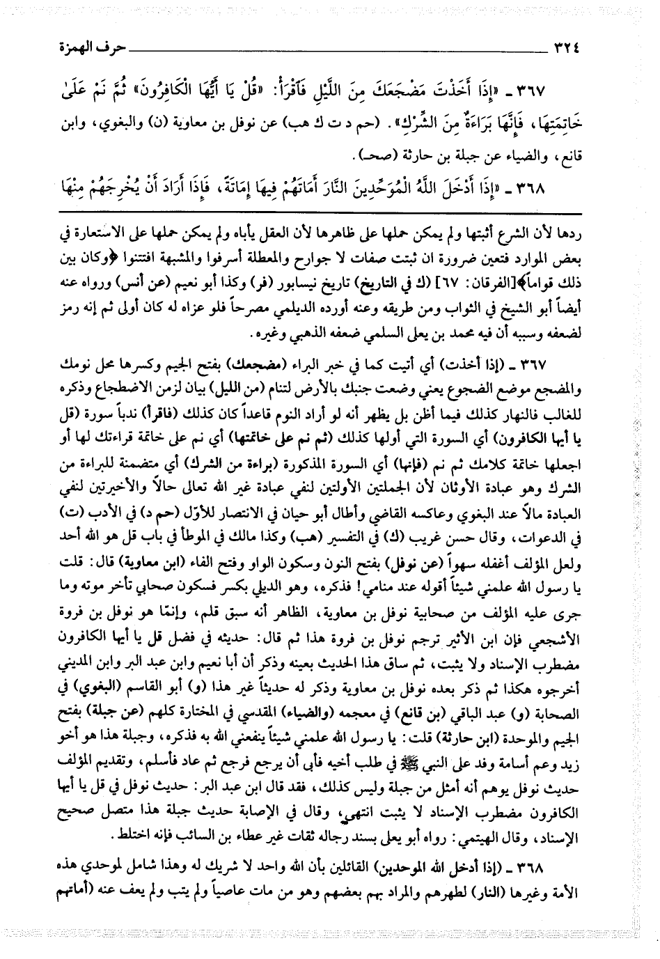 368 - (إذا أدخل الله الموحدين) القائلين بأن الله واحد لا شريك له وهذا شامل لموحدي هذه الأمة وغيرها (النار) ليطهرهم والمراد بهم بعضهم وهو من مات عاصيا ولم يتب ولم يعف عنه (أماتهم