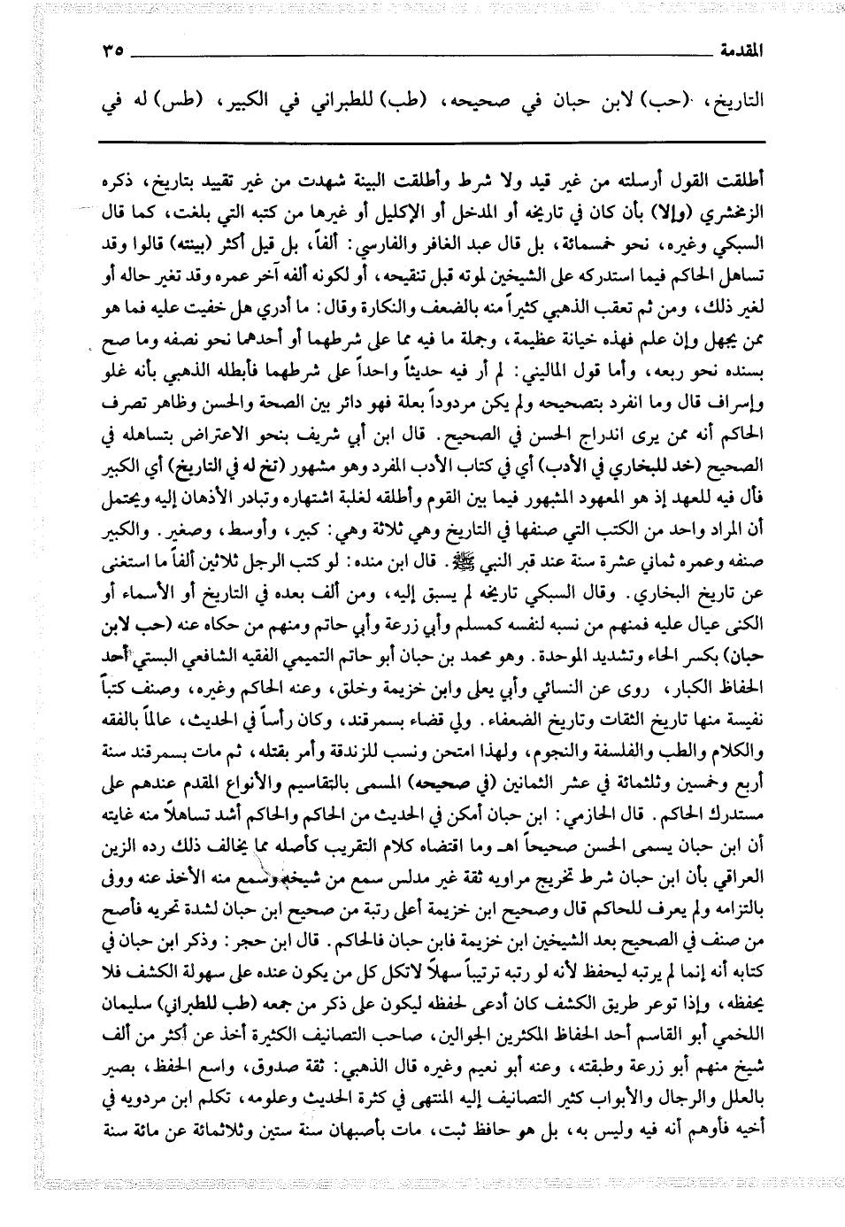 ولي قضاء سمرقند ، وكان رأسا في الحديث ، عالما بالفقه والكلام والطب والفلسفة والنجوم ، ولهذا امتحن ونسب للزندقة وأمر بقتله ، ثم مات بسمرقند سنة أربع وخمسين وثلثمائة في عشر الثمانين (في صحيحه) المسمى بالتقاسيم والأنواع المقدم عندهم على مستدرك الحاكم.
