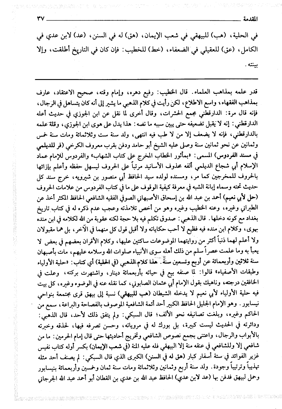 هذا كلام الذهبي (في الحلية) أي كتاب : " حلية الأولياء وطبقات الأصفياء " قالوا : لما صنفه بيع في حياته بأربعمائة دينار ، واشتهرت بركته ، وعلت في الخافقين درجته ، وناهيك بقول الإمام أبي عثمان الصابوني ، كما نقله عنه في الوضوء وغيره ، كل بيت فيه جلية الأولياء لأبي نعيم لا يدخله الشيطان.