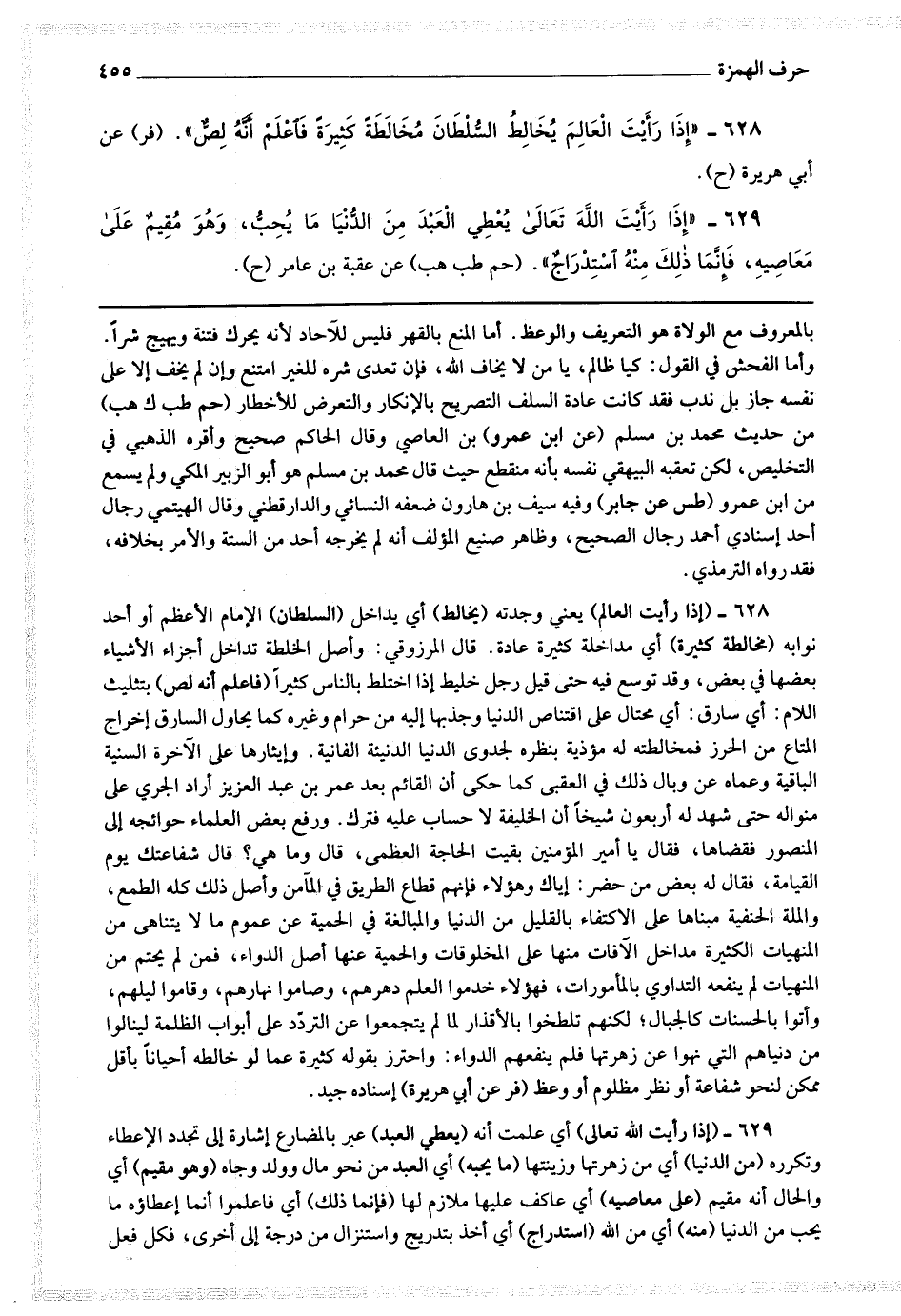 628 - (إذا رأيت العالم) يعني وجدته (يخالط) أي يداخل (السلطان) الإمام الأعظم أو أحد نوابه (مخالطة كثيرة) أي مداخلة كثيرة عادة.