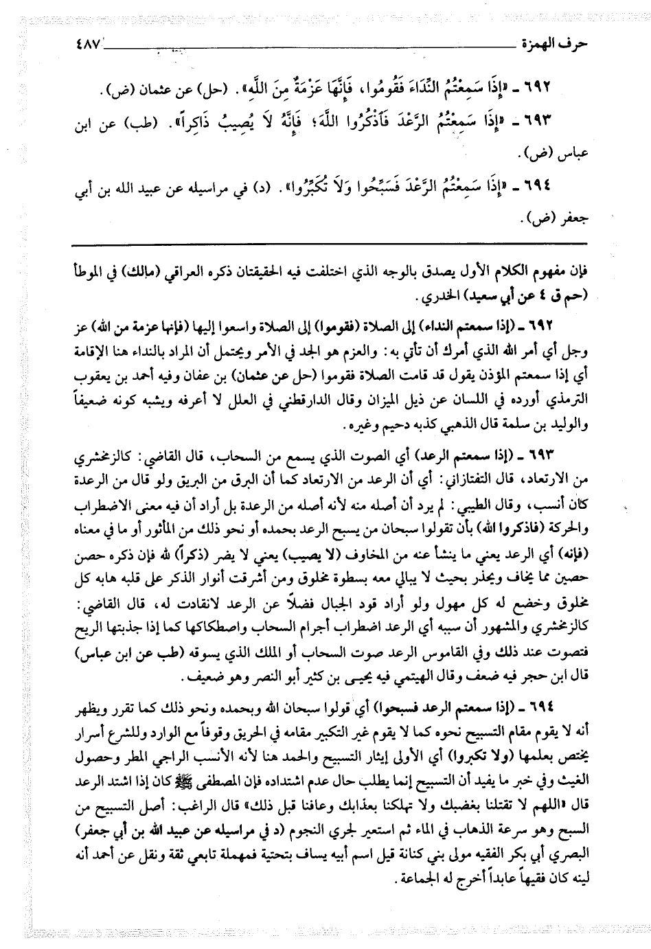 694 - (إذا سمعتم الرعد فسبحوا) أي قولوا سبحان الله وبحمده ونحو ذلك كما تقرر ويظهر