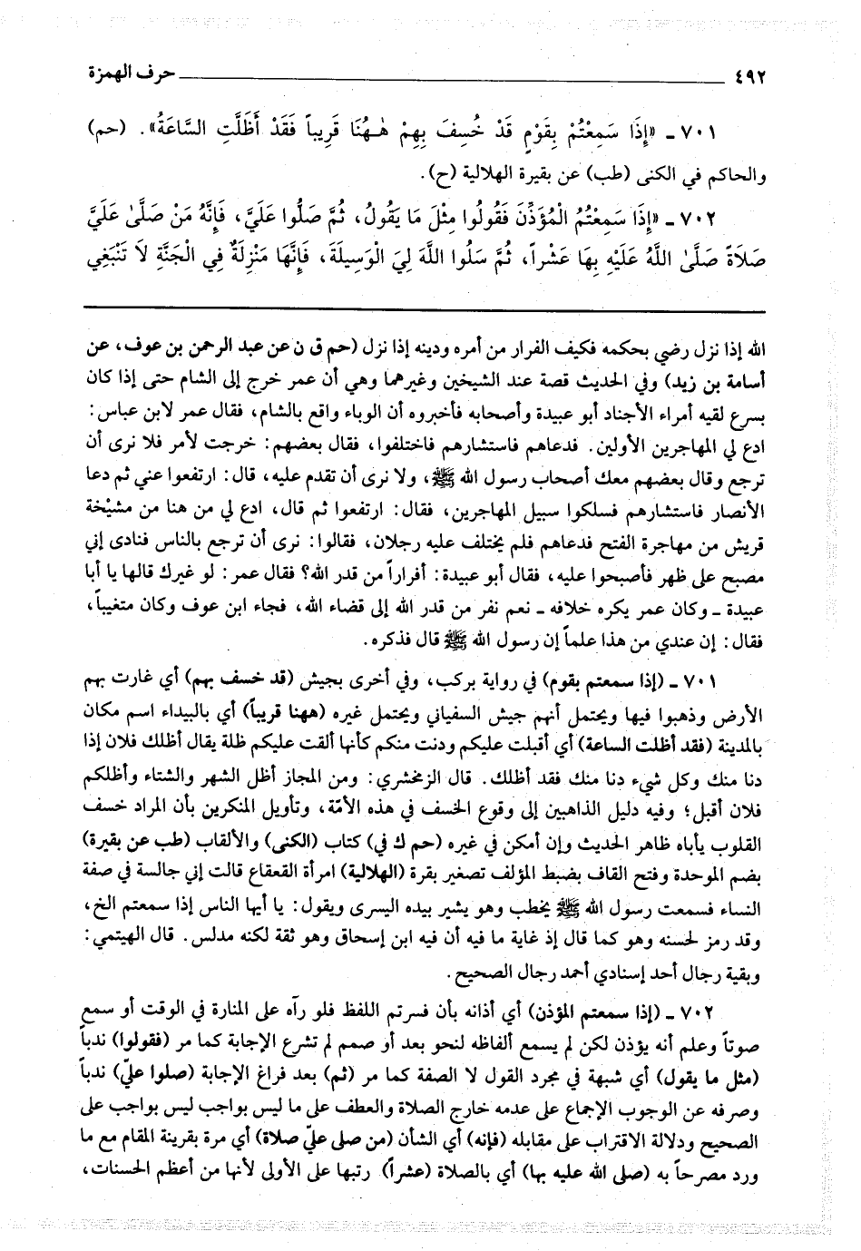 701 - (إذا سمعتم بقوم) في رواية بركب ، وفي أخرى بجيش (قد خسف بهم) أي غارت بهم الأرض وذهبوا فيها ويحتمل أنهم جيش السفياني ويحتمل غيره (ههنا قريبا) أي بالبيداء اسم مكان بالمدينة (فقد أظلت الساعة) أي أقبلت عليكم ودنت منكم كأنها ألقت عليكم ظلة يقال أظلك فلان إذا دنا منك وكل شئ دنا منك فقد أظلك.