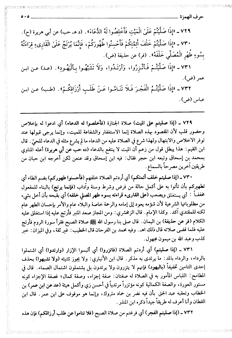 731 - (إذا صليتم) أي أردتم الصلاة (فاتزروا) أي البسوا الإزار (وارتدوا) أي اشتملوا بالرداء ، والرداء بالمد : ما يرتدي به مذكر.