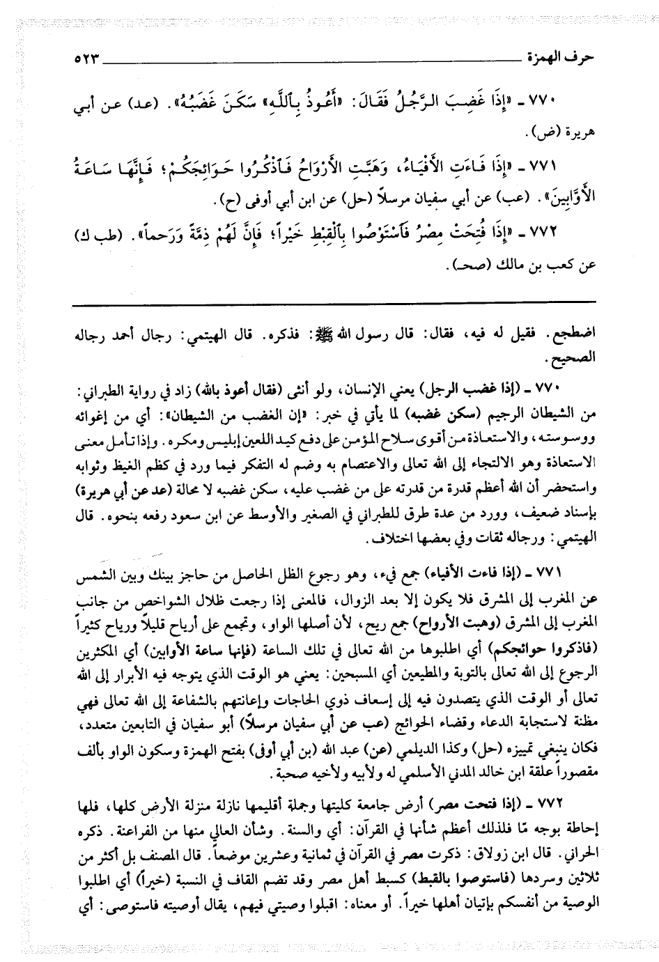 772 - (إذا فتحت مصر) أرض جامعة كليتها وجملة أقليمها نازلة منزلة الأرض كلها ، فلها إحاطة بوجه ما فلذلك أعظم شأنها في القرآن : أي والسنة.
