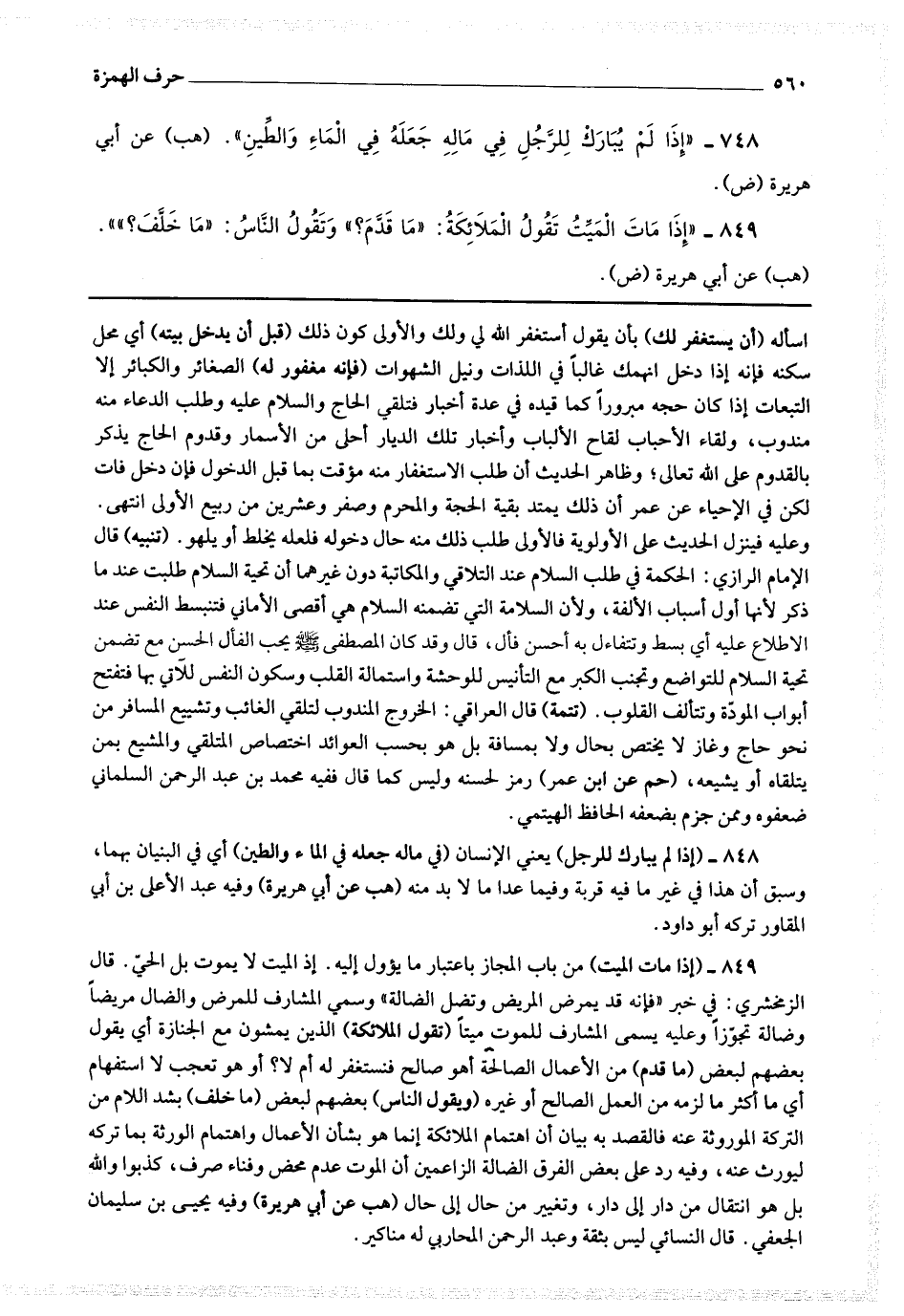 848 - (إذا لم يبارك للرجل) يعني الإنسان (في ماله جعله في الماء والطين) أي في البنيان بهما ، وسبق أن هذا في غير ما فيه قربة وفيما عدا ما لا بد منه (هب عن أبي هريرة) وفيه عبد الأعلى بن أبي المقاور تركه أبو داود 849 - (إذا مات الميت) من باب المجاز باعتبار ما يؤول إليه.