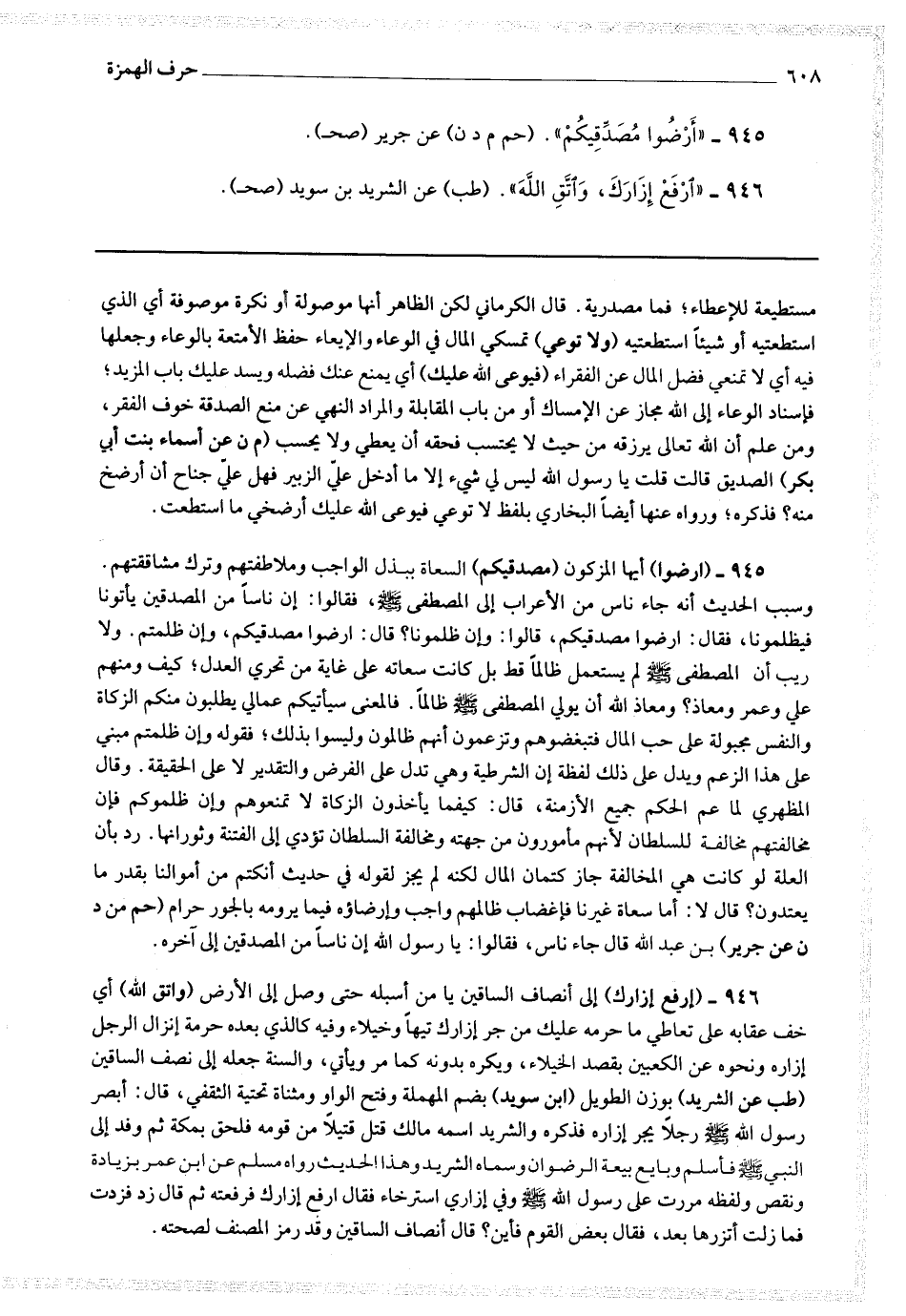 945 - (ارضوا) أيها المزكون (مصدقيكم) السعاة ببذل الواجب وملاطفتهم وترك مشاقهم.