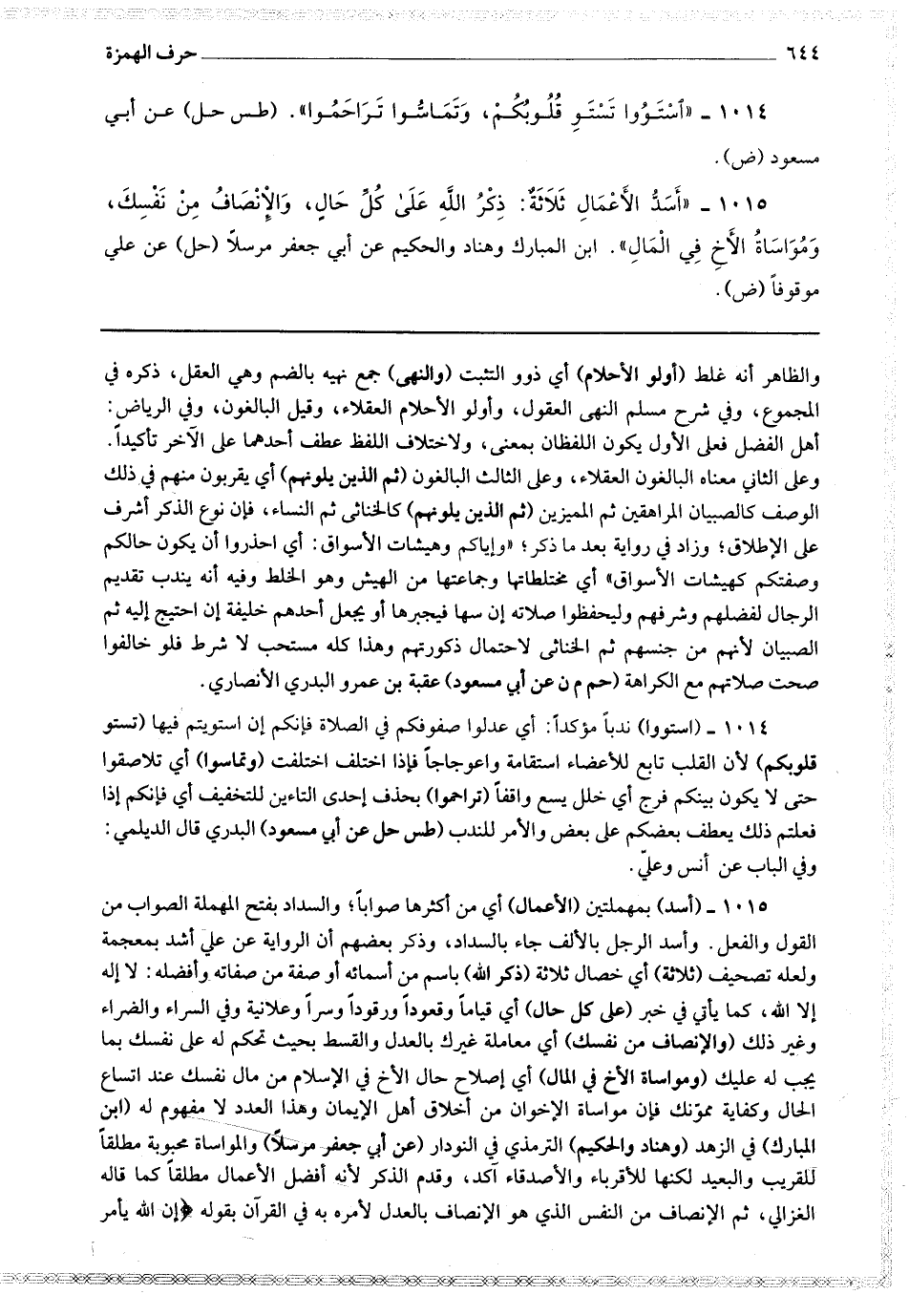 1015 - (أسد) بمهملتين (الأعمال) أي من أكثرها صوابا ، والسداد بفتح المهملة الصواب من القول والفعل.
