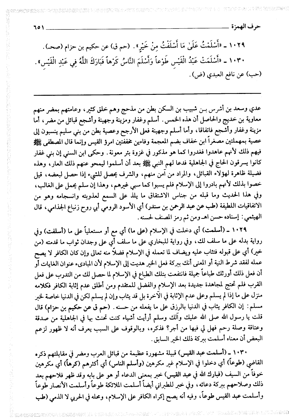 1030 - (أسلمت عبد القيس) قبيلة مشهورة عظيمة من قبائل العرب ومضر في مقابلتهم ذكره القاضي (طوعا) أي دخلوا في الإسلام غير مكرهين (وأسلم الناس) أي أكثرهم (كرها) أي مكرهين خوفا من السيف (فبارك الله في عبد القيس) خبر بمعنى الدعاء أو هو على بابه وقد ظهر فلاحهم بعد ذلك وصلاحهم ببركة دعائه ، وفي خبر للطبراني أيضا أسلمت الملائكة طوعا وأسلمت الأنصار طوعا عبد القيس طوعا ، وفيه أنه يصح على الإسلام ، ومحله في الحربي لا الذمي (طب