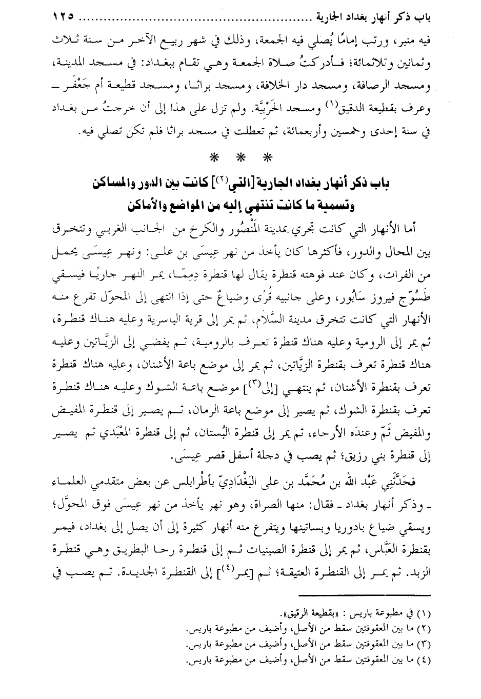 باب ذكر أنهار بغداد الجارية [التي [2]] كانت بين الدور والمساكن وتسمية ما كانت تنتهي إليه من المواضع والأماكن