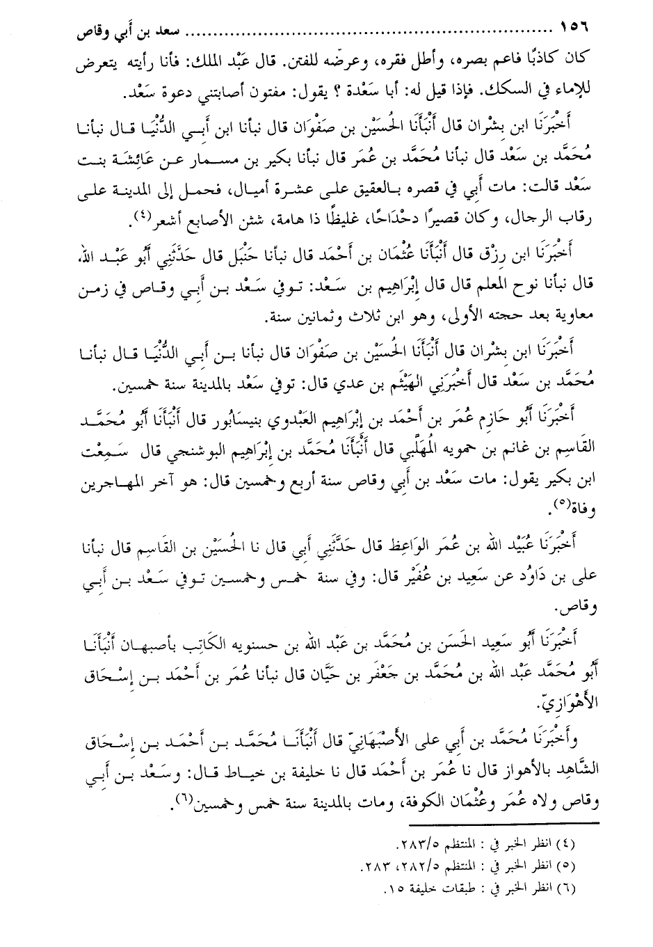 وأَخْبَرَنَا مُحَمَّدُ بْنُ أَبِي عَلِيّ الأصبهاني قَالَ أنبأنا مُحَمَّد بْنُ أَحْمَد بْنِ إِسْحَاقَ الشَّاهِدُ بِالأَهْوَازِ قال نا عمر بن أحمد قال نا خليفة بْن خياط قَالَ: وسعد بْن أَبِي وقاص ولاه عُمَر وعثمان الكوفة، ومات بالمدينة سنة خمس وخمسين [3] .