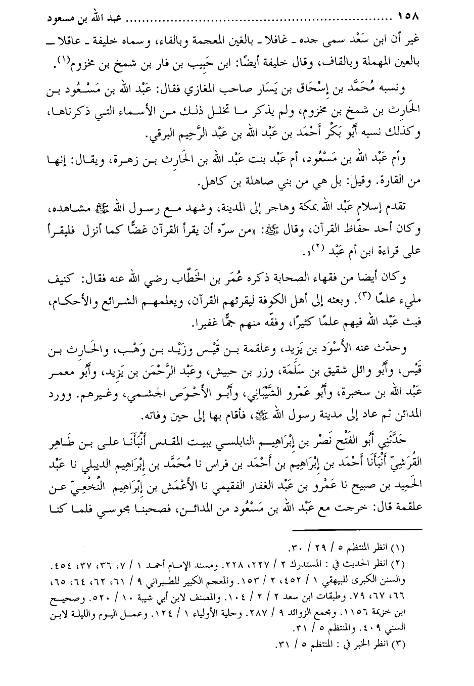 ونسبه مُحَمَّد بْن إِسْحَاقَ بْن يسار صاحب المغازي فقال: عَبْد الله بْن مسعود بْن الحارث بْن شمخ بْن مخزوم، ولم يذكر ما تخلل ذلك من الأسماء التي ذكرناها، وكذلك نسبه أَبُو بَكْرٍ أَحْمَد بْن عَبْدِ اللَّهِ بْن عَبْد الرحيم البرقي.