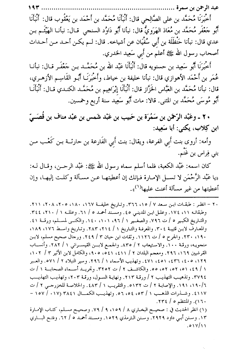 [1] 20- انظر: طبقات ابن سعد 7/15، 366. وتاريخ خليفة 167، 180، 205، 208، 211.