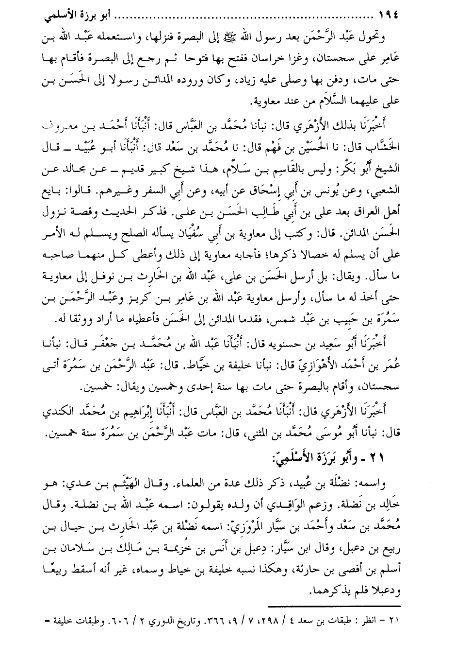 [1] 21- انظر: طبقات بن سعد 4/298، 7/9، 366. وتاريخ الدوري 2/606. وطبقات خليفة-