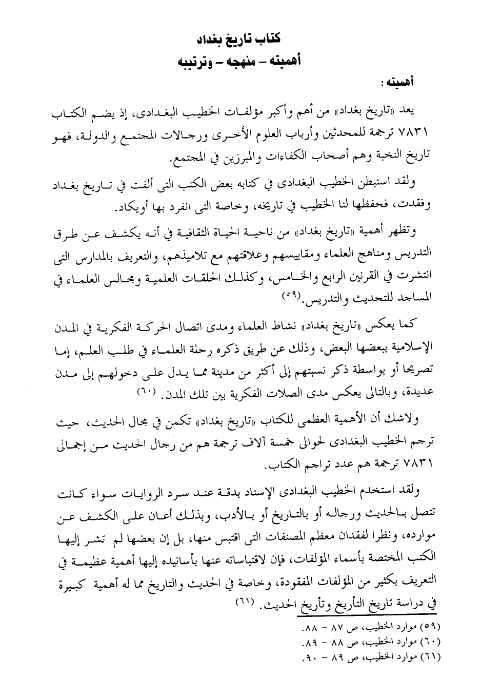 كتاب تاريخ بغداد أهميته- منهجه- وترتيبه