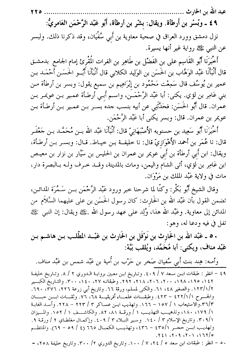 [2] 50- انظر: طبقات ابن سعد 5/24، 7/100. وتاريخ الدوري 2/300. وتاريخ خليفة 258، -