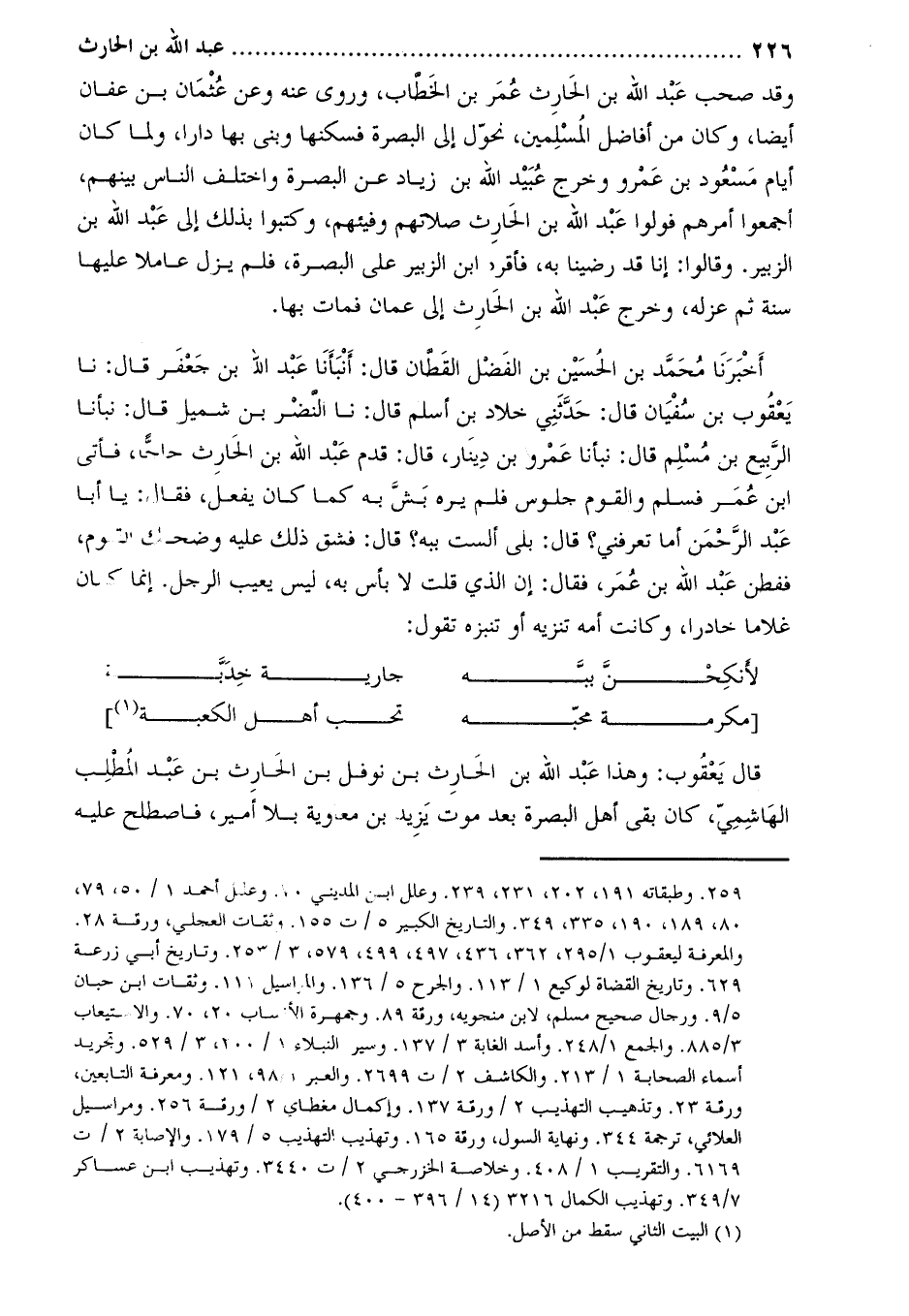 قَالَ يعقوب: وهذا عَبْد اللَّهِ بْن الحارث بْن نوفل بْن الحارث بْن عَبْد المطلب الهاشمي، كان بقي أهل البصرة بعد موت يزيد بْن معاوية بلا أمير، فاصطلح عَلِيه