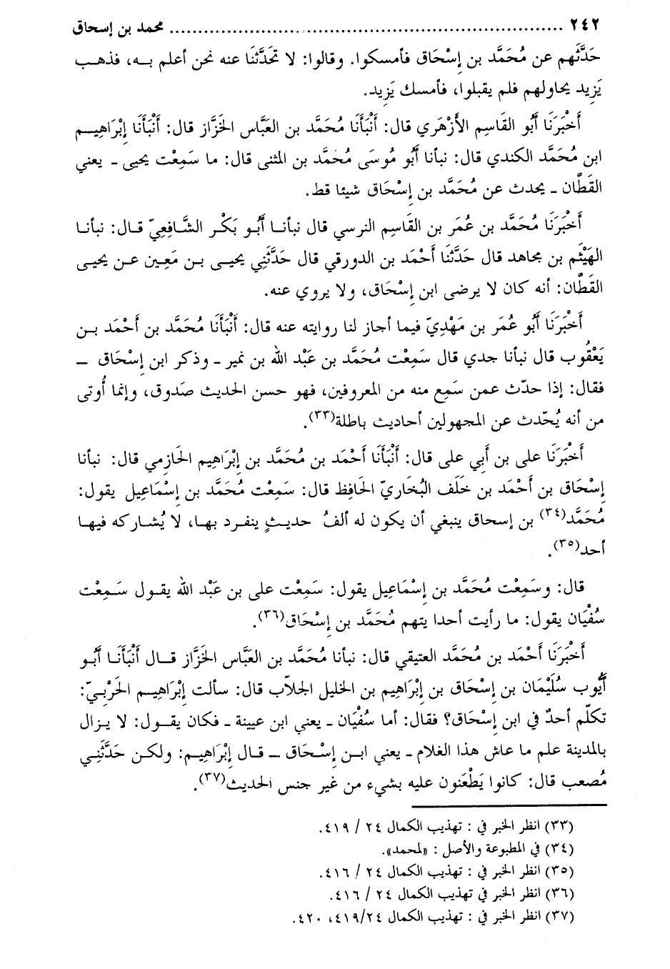 قَالَ: وسمعت محمد بن إسماعيل يقول: سمعت عَلِيّ بْن عَبْد اللَّه يقول سمعت سفيان يقول: ما رأيت أحدا يتهم محمد بن إِسْحَاقَ [4] .