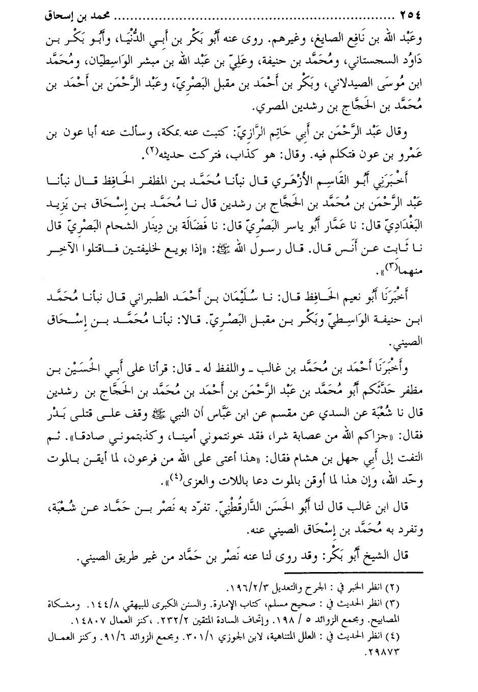 . أَخْبَرَنَا أبو نعيم الحافظ قال: نا سليمان بن أحمد الطبراني قال نبأنا محمّد ابن حنيفة الواسطيّ وبكر بن مقبل البصريّ. قالا: نبأنا محمد بن إسحاق الصيني.